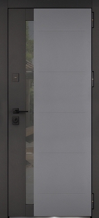 Металлическая порошковая дверь с реечным оформлением и длинной ручкой-скобой